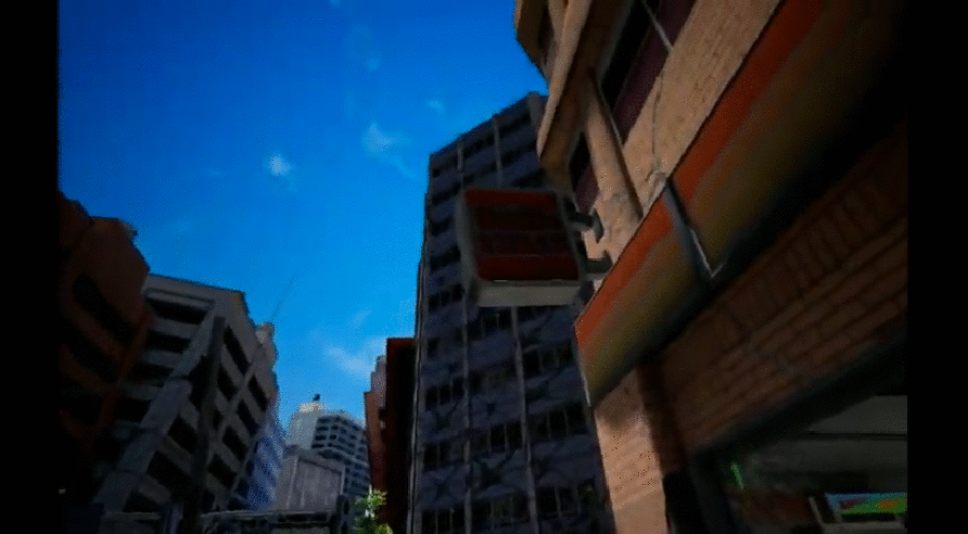 じっくりと見て回れるし、ビル倒壊の瞬間をVRで体験する事もできます。