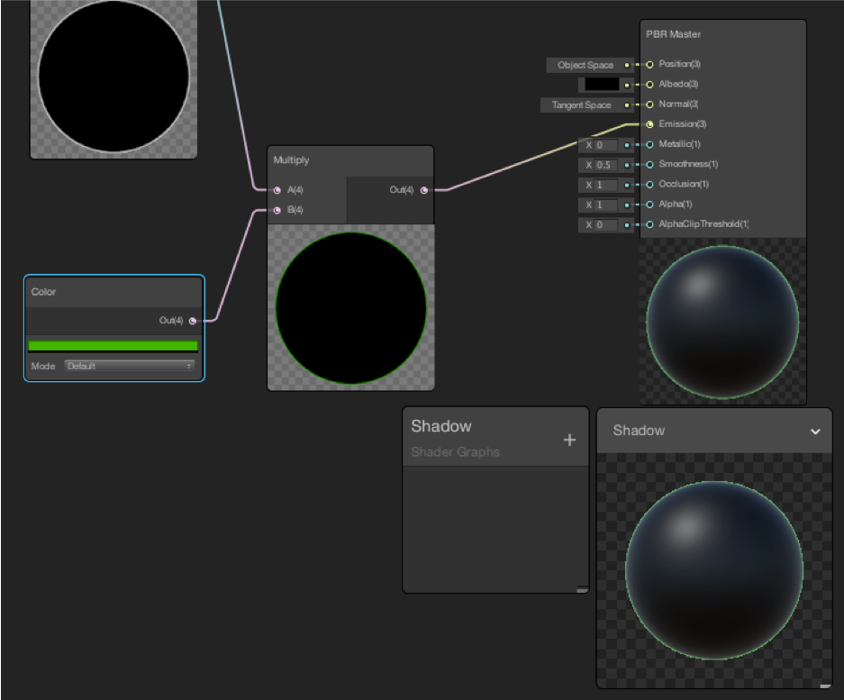 Shader "Custom/sample" { SubShader { Tags { "RenderType"="Opaque" } LOD 200 CGPROGRAM #pragma surface surf Standard #pragma target 3.0 struct Input { float2 uv_MainTex; float3 worldNormal; float3 viewDir; }; void surf (Input IN, inout SurfaceOutputStandard o) { fixed4 baseColor = fixed4(0.05, 0.1, 0, 1); fixed4 rimColor = fixed4(0.5,0.7,0.5,1); //以下をShaderGraphにて構築する o.Albedo = baseColor; float rim = 1 - saturate(dot(IN.viewDir, o.Normal));//処理1 o.Emission = rimColor * pow(rim, 2.5);//処理2 } ENDCG } FallBack "Diffuse" } |