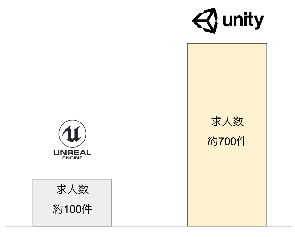また2019年2月現在、Unityの求人数を調査したところ国内で約700件あるのに対して、Unreal Engineの求人は100件ほどでした。