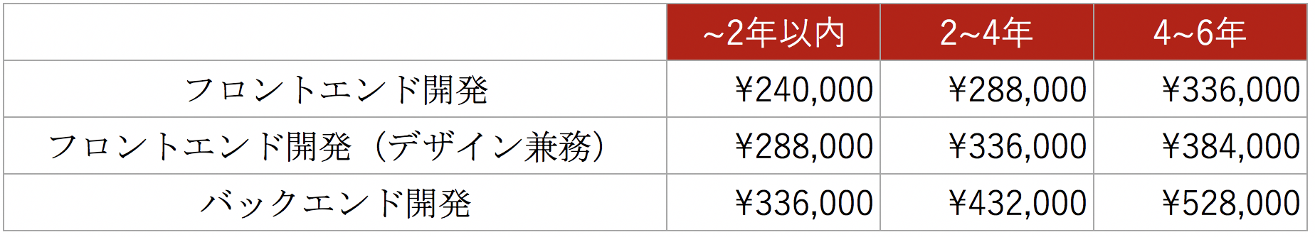 また、デザインが出来るかどうかでフロントエンド開発の単価は単月で5万円ほど変動します。
