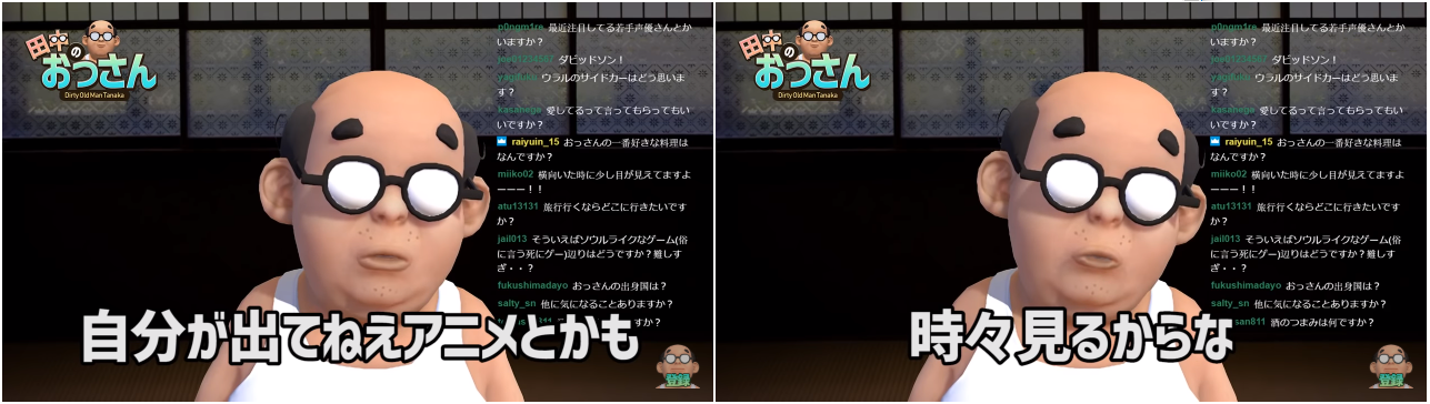 中の人については田中のおっさん自身がしょっちゅうネタにしているため、視聴者も「隠す気がなさすぎ!」と大はしゃぎ。一種の芸風のようになっています。