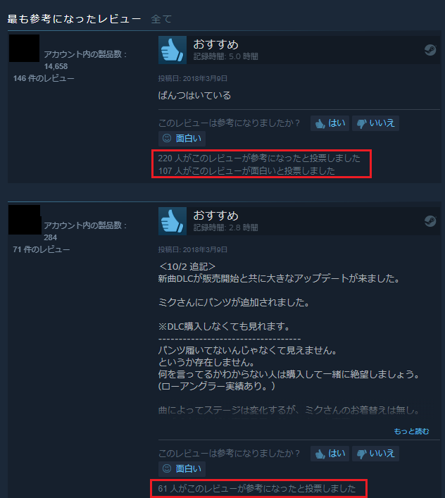 おわかりでしょうか、現時点で「最も参考になった」のレビューが「ぱんつはいている」なのです。