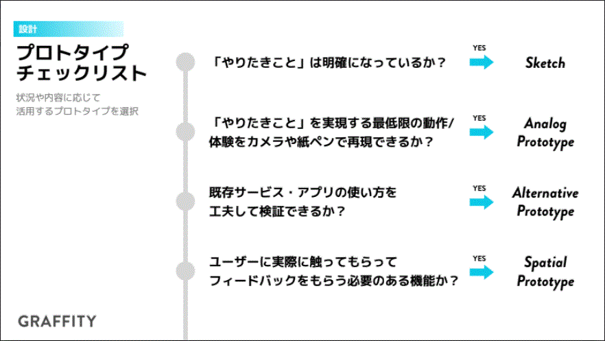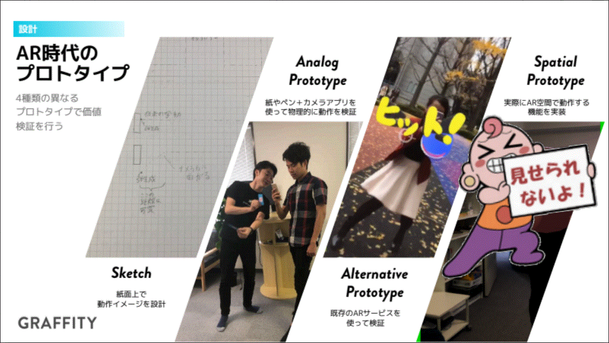 そこで、GraffityではAR開発において4種類のプロトタイプで価値検証を行っています。