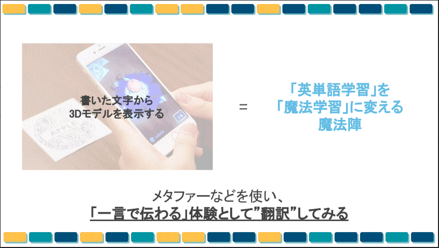 この流れにより『「英単語学習」を「魔法学習」に変える魔法陣』という「翻訳した体験」が生まれます。