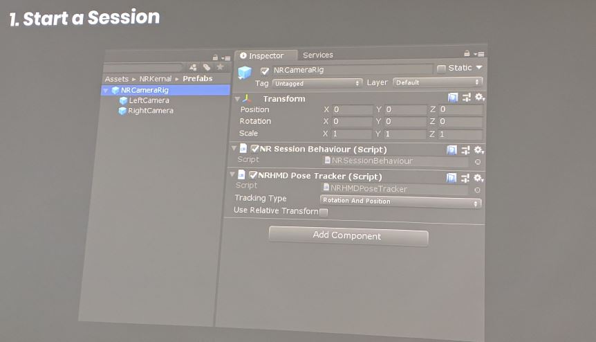 そして、NRSessionにはNRHMDPoseTrackerとNRInputが接続され、NRHMDPoseTrackerで頭の位置、NRInputでコントローラの入力情報を更新します。