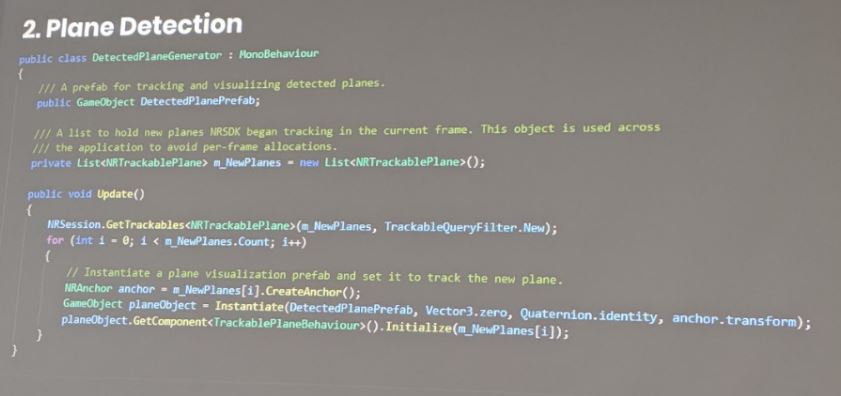 各平面上にNRAnchorを作成して、以前のフレームで生成した平面のPrefabをインスタンス化します。