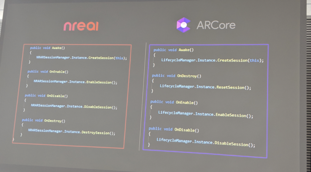例えば、ARCoreで見てみると以下のような共通点と相違点が存在します。