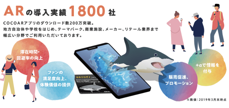 現在COCOARを導入している企業は1,800社、専用アプリの「COCOAR2」のダウンロード数は200万を突破しています。