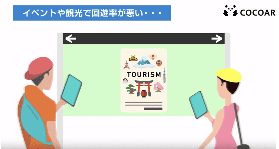 COCOARは、企業のイベントや商品のプロモーション、観光地の告知といったPR活動はもちろんのこと、プレゼンに利用する資料や企画書、商談の際に商品のイメージを分かりやすく伝えるためのツールとしてなど、幅広い分野で活用されています。
