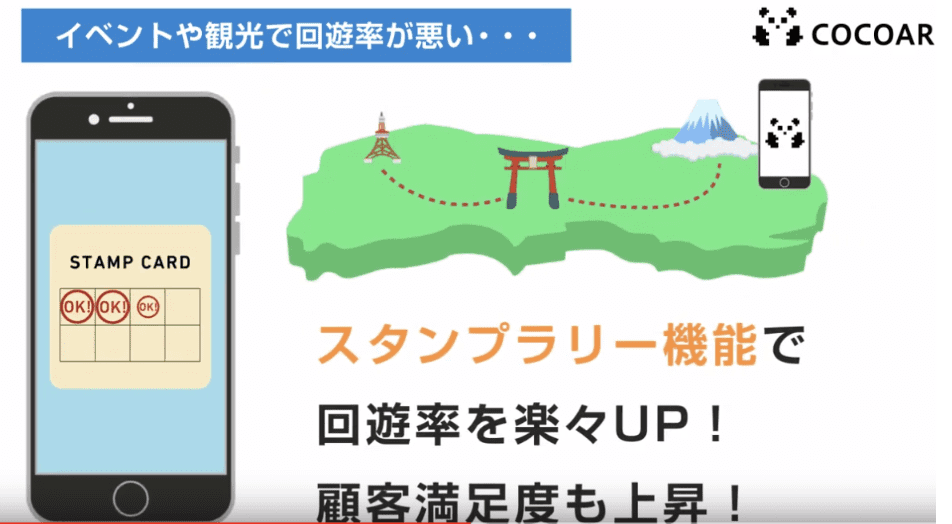 スタンプラリーを新たな観光資源として活用している自治体も増えてきていますが、COCOAR Proを利用すると、スマホでスタンプを集めるスタンプラリーサービスが利用できます。