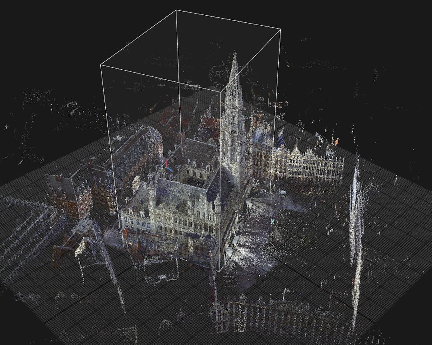 その三次元の位置を示したポイントが集まったものをポイントクラウド(点群)といます。