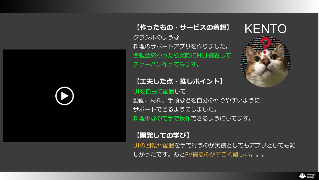 Magic Leapでの開発は初めてだったので、手探りで開発を進め、なんとか形にすることができました。
