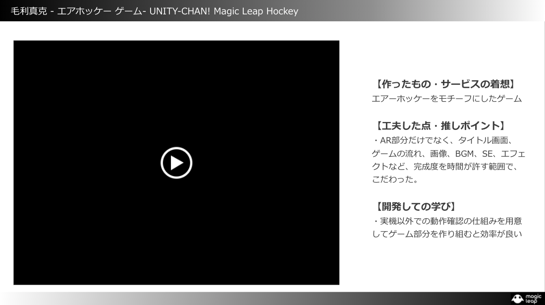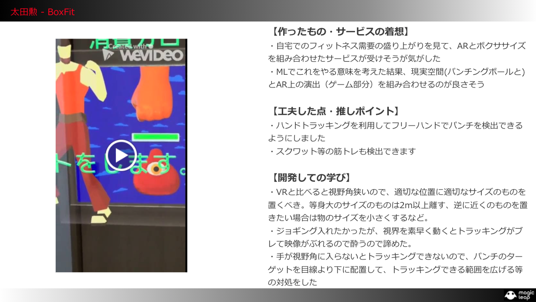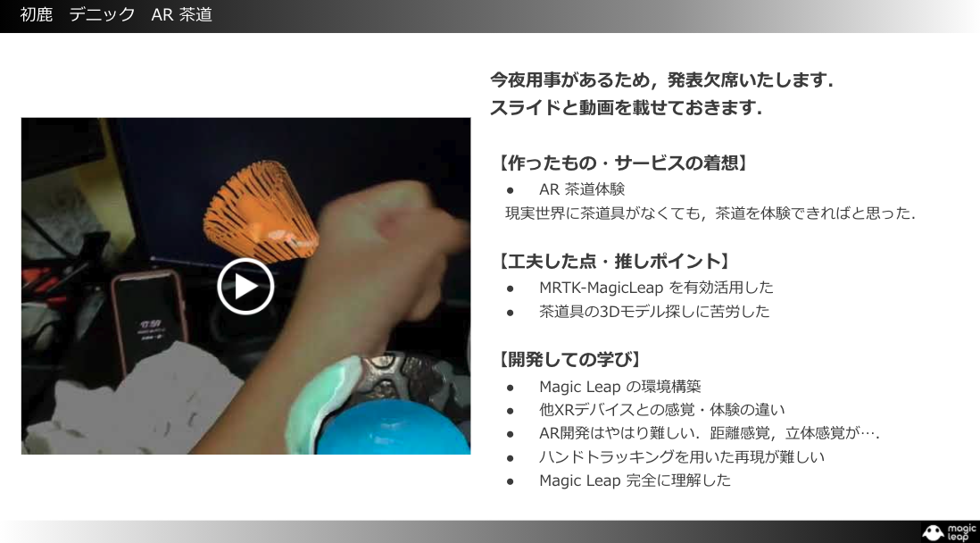 ※Magic Leap Challengeについてはこちら → Magic Leap Challenge | デバイス配布型 リモートハッカソン
