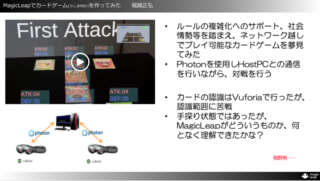 Photonを使用しHostPCとの通信を行うことで、相手側のMagic Leapとの対戦を実現されております。