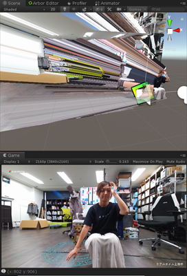 - Windows PC上でシーンを再生すると、以下のようにカメラ映像がシーンに映るかと思います。
