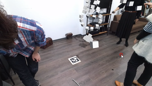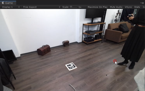 あらかじめ物理スペース内に原点となるべき点を定め、そこにARマーカーを配置し、Windows PC側でマーカーを認識させることでその場所を原点としてリセットします。