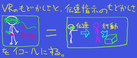 ゲーム設定も「2つの世界の特異点に、VR機器を被ることで移動できる」とすることで「そもそも物をつかむ必要がない」としています。