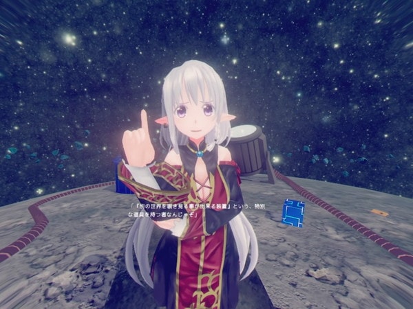 ゲームの舞台は、「複数ある世界が唯一重なる特異点」がある星の上であり、VR機器を被っていることでプレイヤーとこの少女の世界の特異点に移動できるという設定となっています。