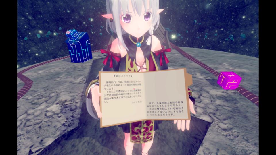 多くのVRゲームは自分(主人公)が動くことを前提にしたものが多いのですが、星の欠片の物語は主人公が動かず、ヒロインを動かすというアプロートを取っています。
