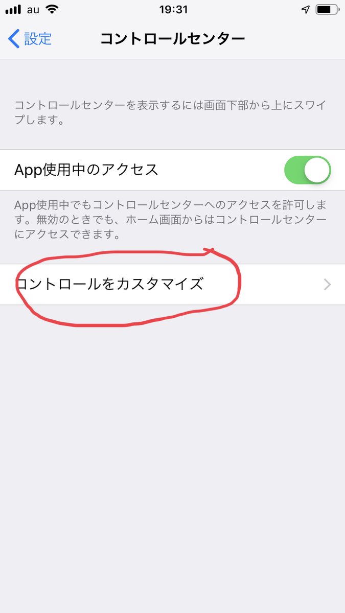 まずは「設定」アイコンをタップしメニューから「コントロールセンター」を選択
