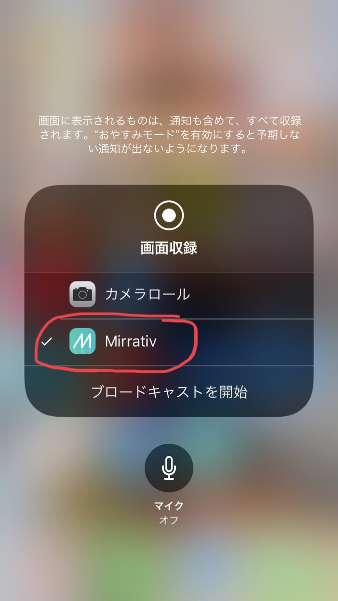 「Mirrativ」のアイコンを選択してブローキャストを開始をタップすると、即座に配信が開始されます。