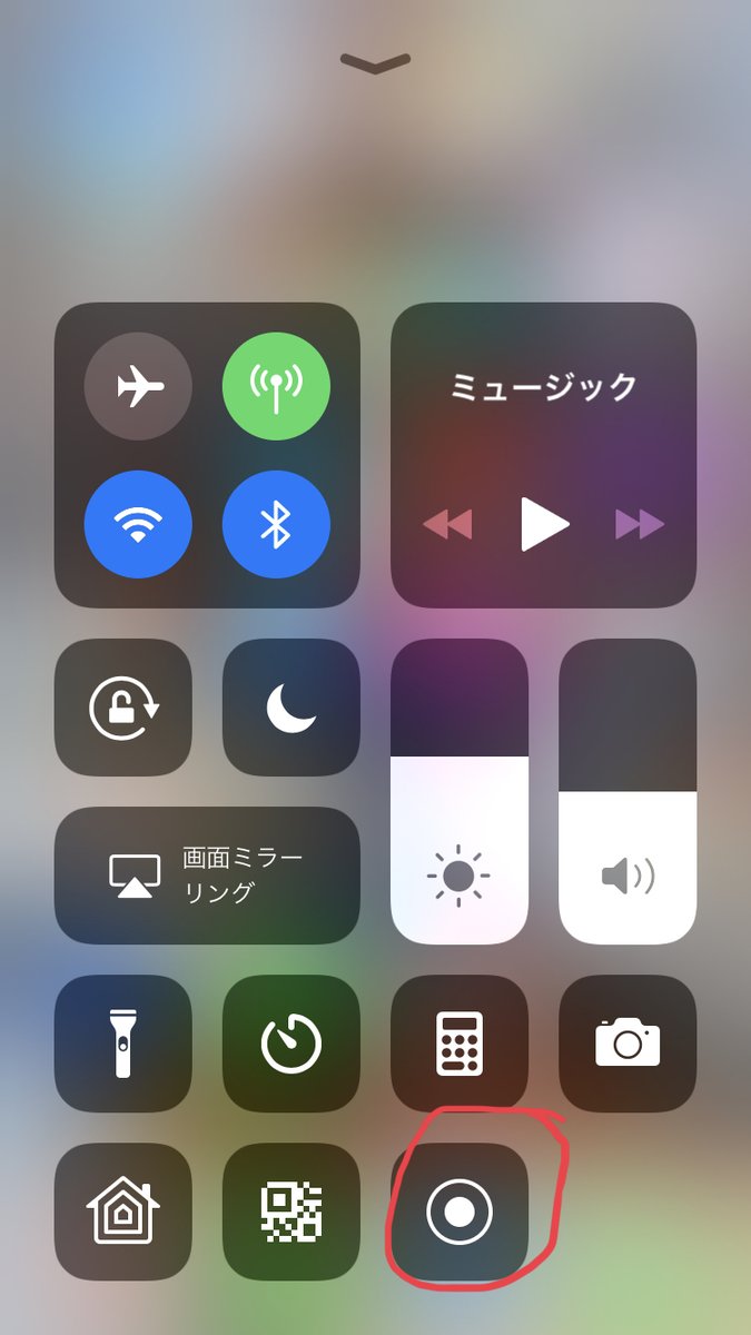 コントロールセンターに追加された「画像収録」アイコンを長押しします。