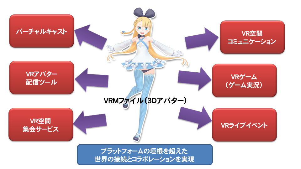 これに対応すべく株式会社ドワンゴが各サービス間での互換性を追求した人型3Dデータ用ファイルフォーマット「VRM」を発表、提供を開始しました。