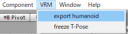 設定が完了したら、再度「VRM」→「Export humanoid」を実行します。