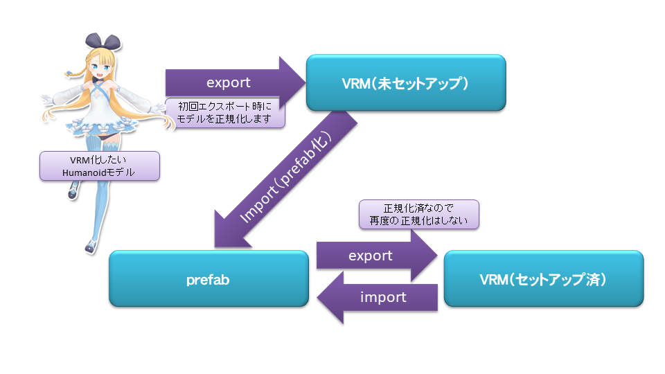 これでFBXの変換が完了し「VRM」形式で出力されてモデルの「正規化」と呼ばれる処理が完了します。