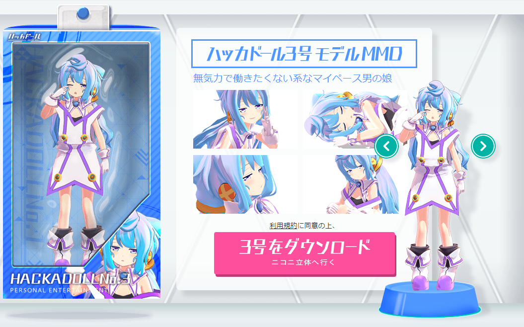ハッカドールは1号・2号・3号ともにMMDモデルが現在無料配布されています!