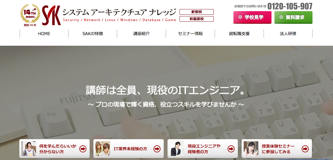 一方通行ではない双方向のきめ細かい授業によって「ゼロからプロへ」をモットーに初心者からプロのエンジニアにしっかり育成してくれることに定評があります。