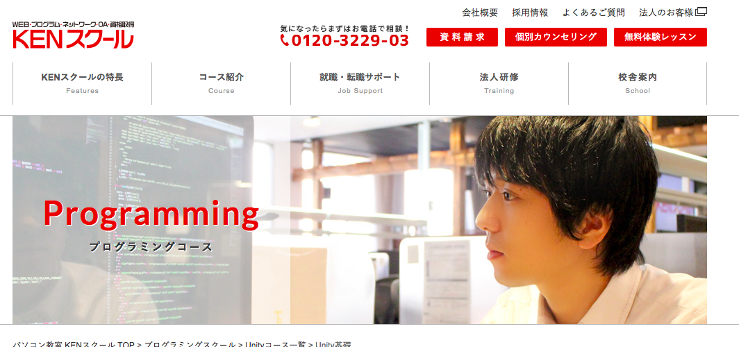 提供コースは「Unity講座基礎コース」と「Unity講座実践コース」の2コースで、初心者からしっかりと学び、就職や転職に際してもしっかりサポートしてくれることが特徴です。