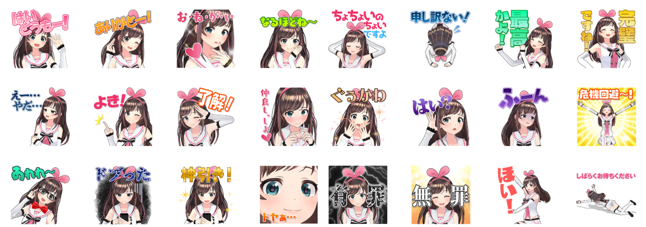 キズナアイちゃんは3種のラインスタンプを販売中です!