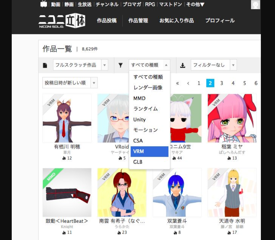 投稿可能なファイル形式は、MMDの形式である「PMD」「PMX」を始め、3Dアバターを扱うために開発されたファイル形式「VRM」など幅広く対応しています。