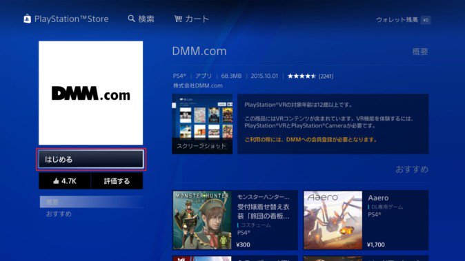 STEP⑶ PS4にDMM.comのアプリをダウンロード