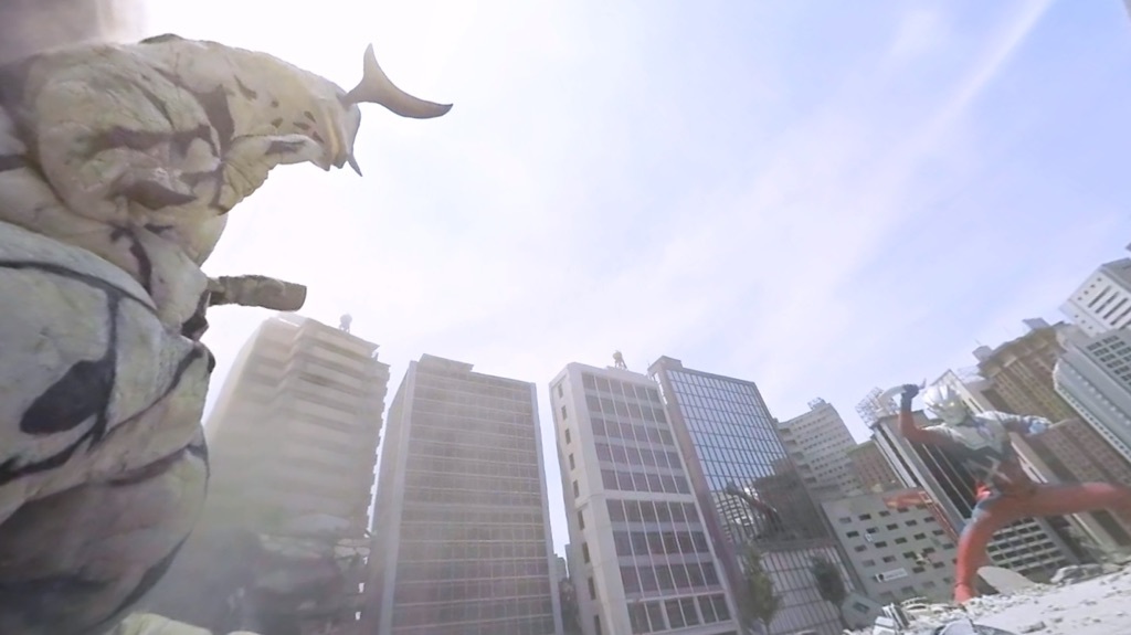 ビルから避難して地上に出た後はウルトラマンゼロとエレキングを見上げるあおりの視点になり、その巨大さが伝わって鳥肌ものです。