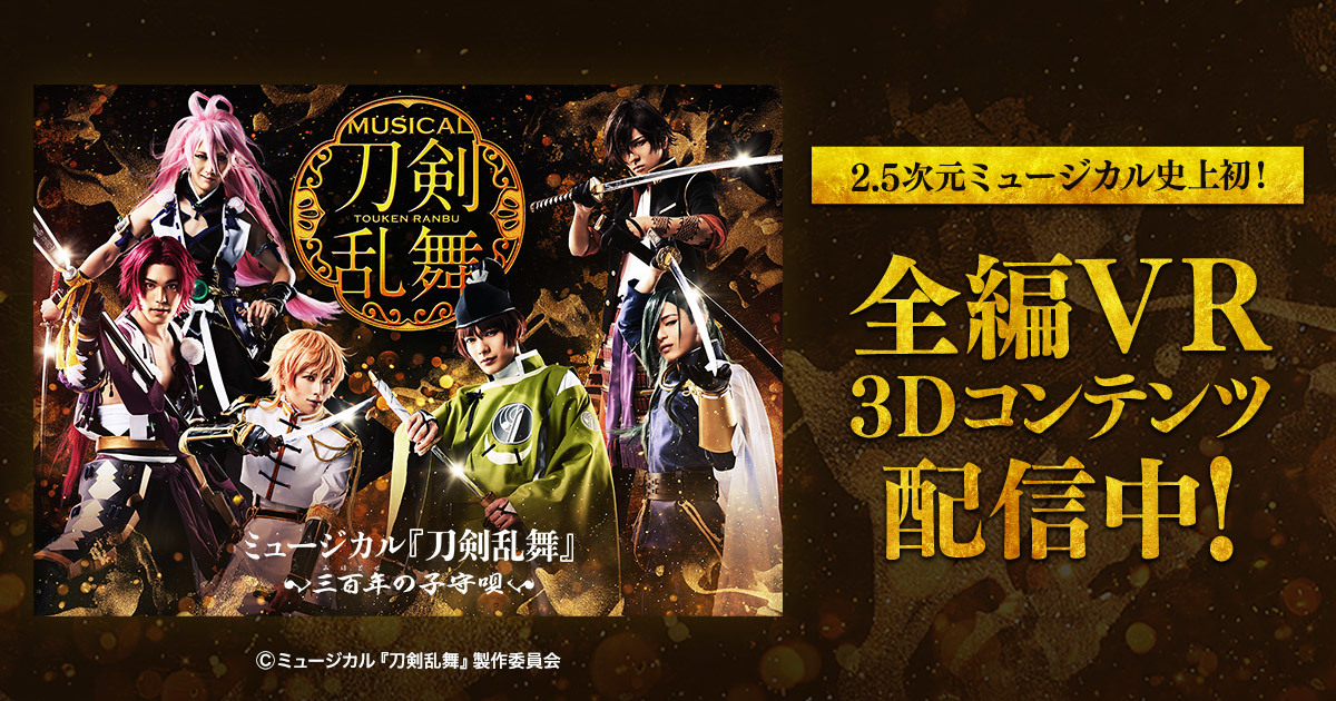 女子に大人気なオンラインゲーム「刀剣乱舞-ONLINE-」の実写化ミュージカル第3段『ミュージカル『刀剣乱舞』 ~三百年の子守唄~ 』を全編VR化したコンテンツです。