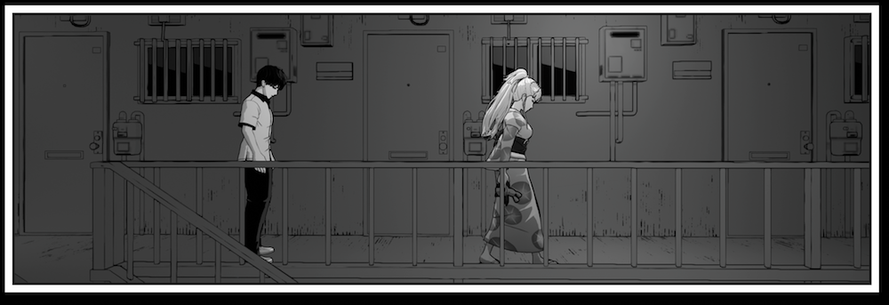 キャラクターはフルボイスで動きもつけられているため、一見アニメ風ではありますが、白黒の画面、コマ割りや吹き出しといった漫画独特の手法を取り入れているため、自分が実際に漫画の世界の中に『いる』ことを強烈に感じさせてくれます