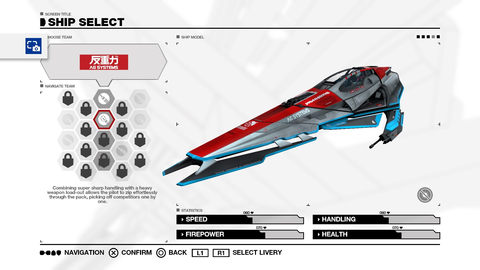 WIpeoutに登場する各「クラフト」にはそれぞれに、スピードやハンドリング、シールド性能、攻撃性能などが細かにデータ化されています。