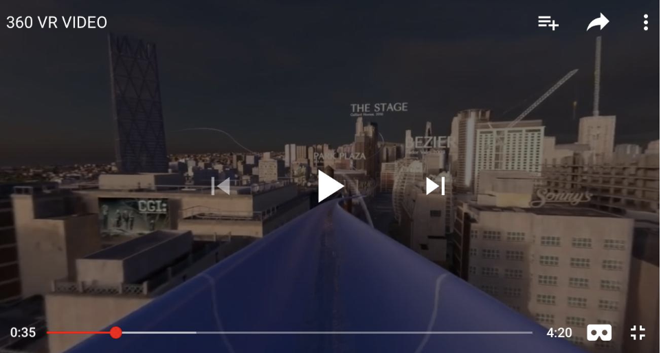 見たい動画を選択した後、少しだけ設定が必要で、動画右下にあるCardboardアイコンを押すだけで、設定は完了します。